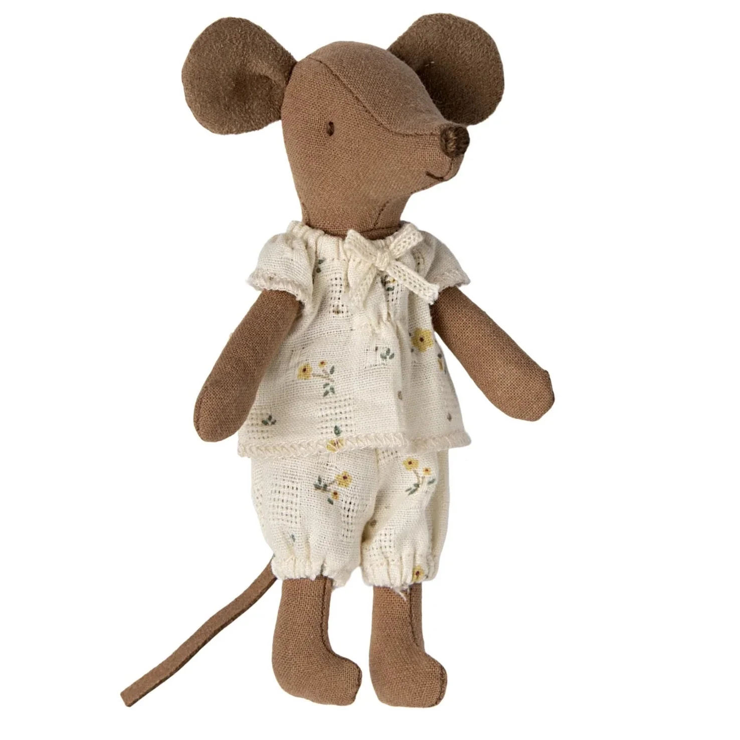 A classic Maileg item. This mouse is ready for hours of play and sleeps tight in the little matchbox. The clothes and bedlinen are made of soft fabrics with unique prints in beautiful colours. Extend the story by adding accessories to the play. She has magnetic hands so can hold the Thermos cups and the Fire sticks for the bonfire