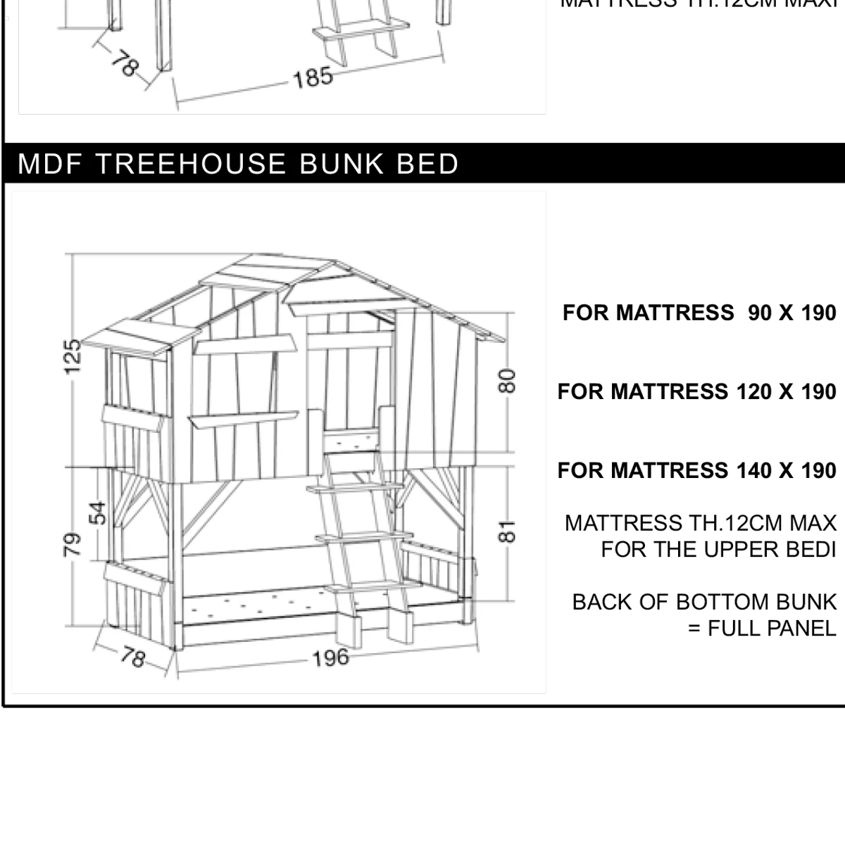 Beds available in unfinished MDF (for you to paint) or a number of colour lacquers. Roof and sides reversible enabling you to choose which side the windows or slide will be on.