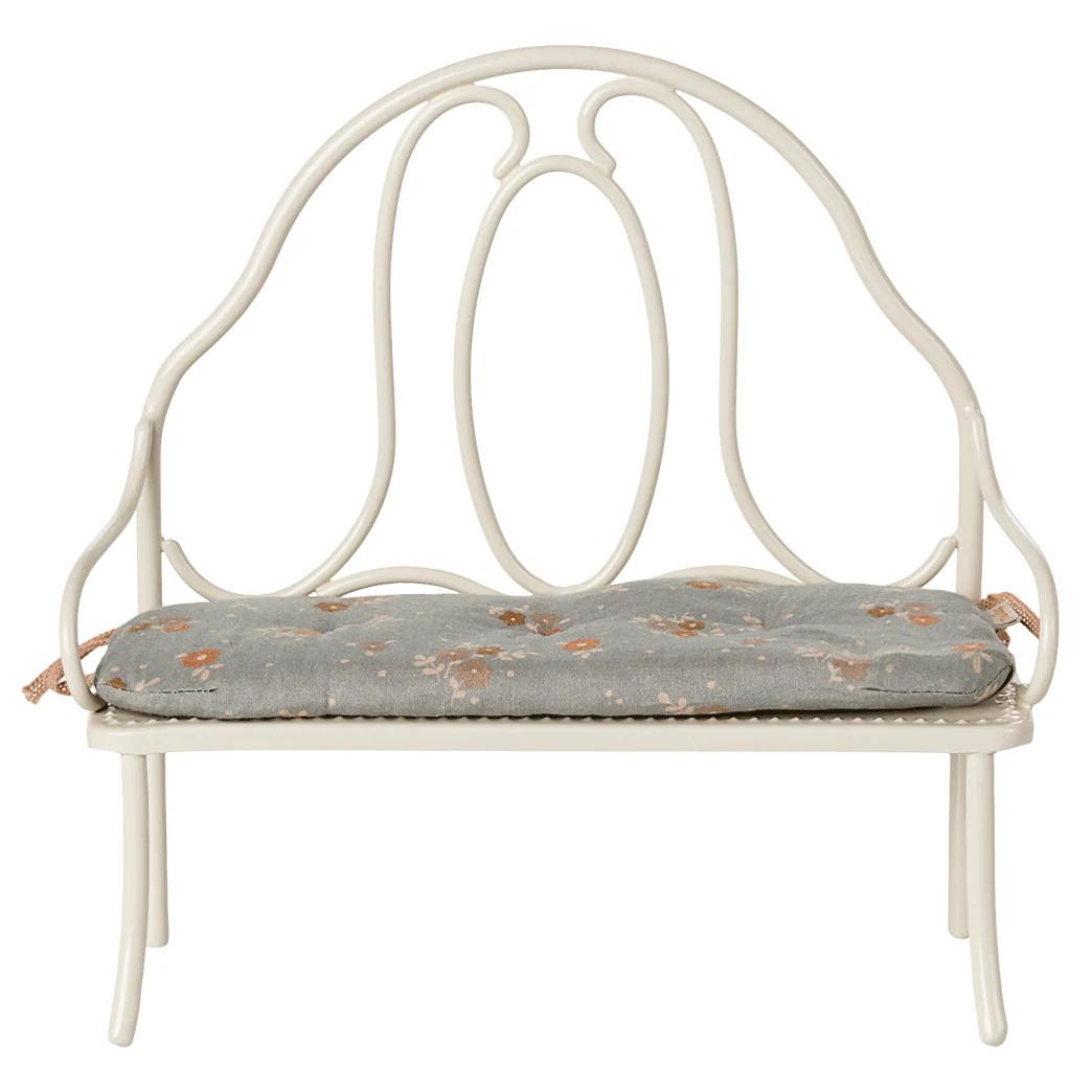The beautiful vintage bench comes with a soft cushion to secure a comfortable seat. The bench is perfect for a short rest and fits perfectly for the bunny and rabbit size 1 and 2.